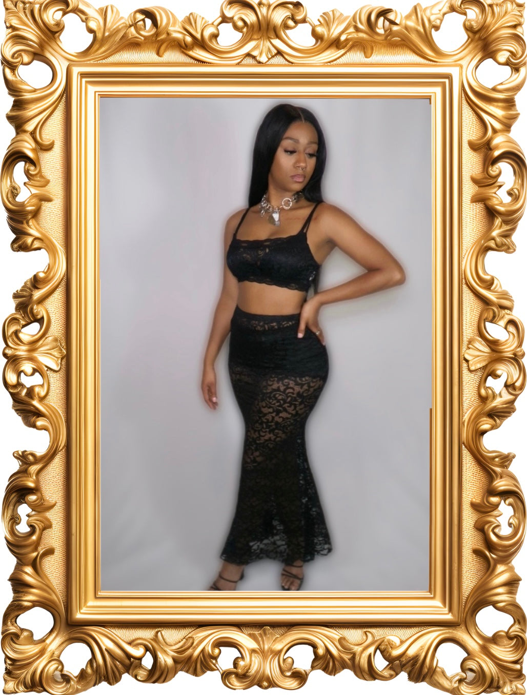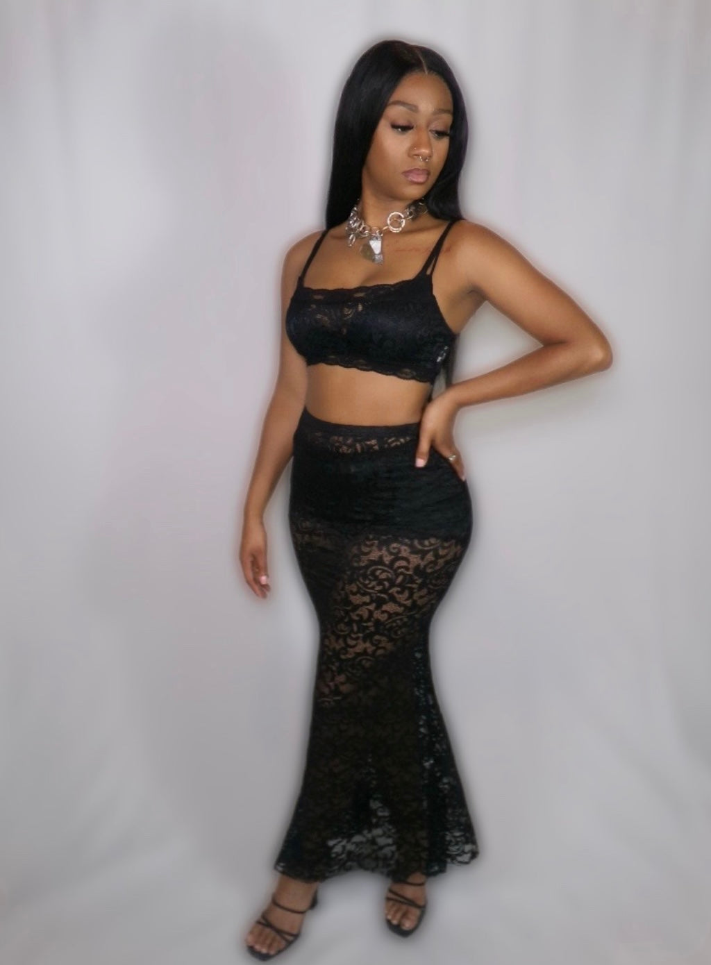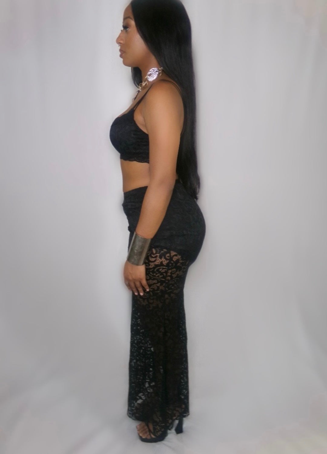 BLACK UNDERGARMENTS NOT INCLUDED. Lace is see through!
